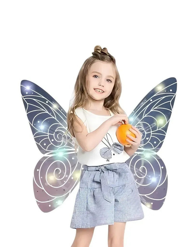 Світні крила феї Wings of 840 — це чарівний аксесуар для дівчаток, який створює казкову атмосферу на святах, фотосесіях і під час ігор. Крила обладнані LED-підсвіткою м'якого сяйва та вбудованою мелодією, завдяки чому кожен помах перетворюється на справжнє шоу.