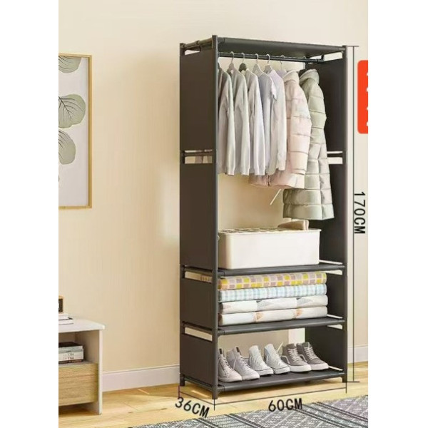 Тканевий стелаж AND XL-1483 – практичне та компактне рішення для організації одягу в квартирі, кімнаті або на балконі. Висота шафи становить 170 см, ширина – 60 см, глибина – 36 см, що дозволяє зберігати речі впорядковано, не займаючи багато простору.