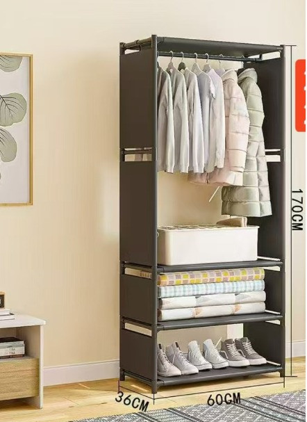 Монтаж стелажа простий і не потребує спеціальних навичок або інструментів. Легка вага та мобільність дозволяють легко переміщати шафу за потреби, забезпечуючи зручний доступ до одягу. дизайн та функціональність роблять тканевий стелаж AND XL-1483 ідеальним вибором для дому або тимчасового зберігання речей у невеликих приміщеннях.