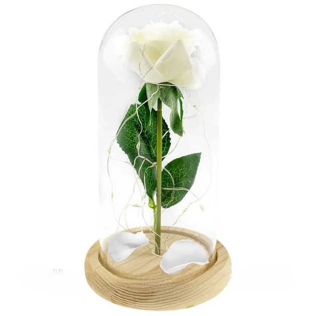 Троянда в колбі біла з LED-підсвіткою та батарейками, декоративний нічник для спальні та дітей