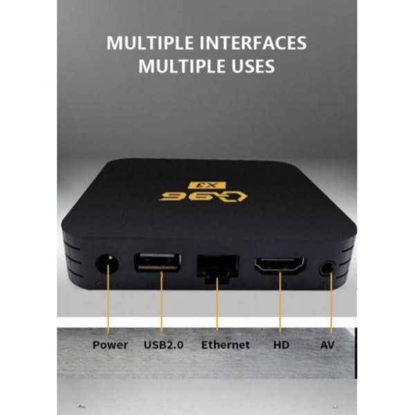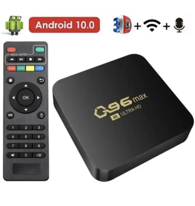 TV-приставка Q96 MAX — компактний і потужний пристрій, що перетворює будь-який телевізор на повноцінний мультимедійний центр. Модель працює на Android 10 і обладнана чотириядерним процесором RK3228A з графічним ядром Mali-400MP2, забезпечуючи плавне відтворення відео та стабільну роботу застосунків.
