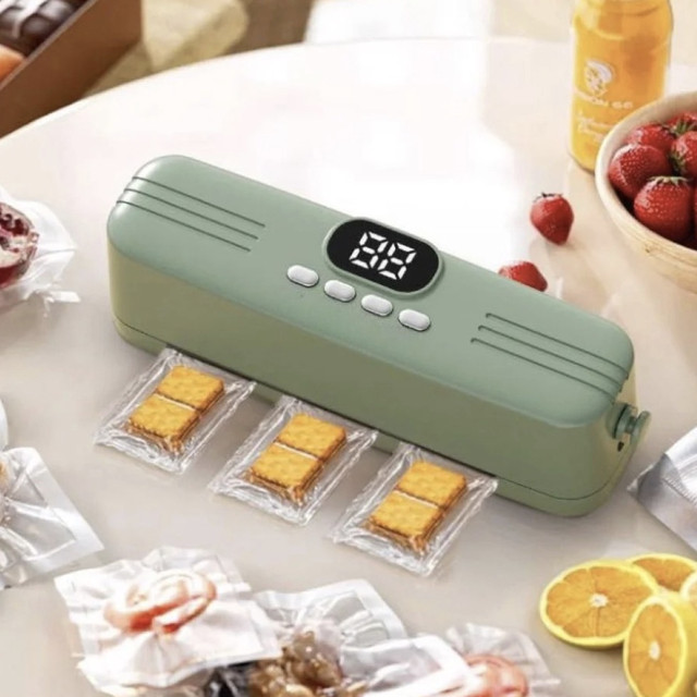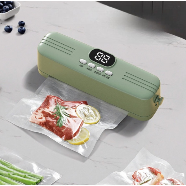 Вакууматор герметично запалює пакети із шириною шва приблизно 1,5 см, ефективно запобігаючи проникненню повітря та продовжуючи свіжість продуктів. Напівавтоматичний режим роботи робить процес швидким і зручним, а тиск до 60 mmHg забезпечує якісне вакуумне паковання невеликих об'ємів від 1 до 3 літрів.