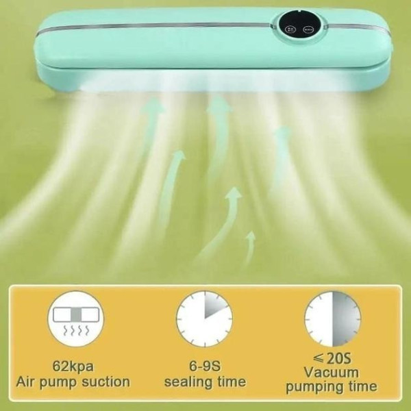 Automatic Vacuum Machine 90W має два режими — «вакуум + запайка» і «тільки запаювання», що робить його універсальним рішенням для різних завдань. Стильний сучасний дизайн впишеться в будь-який інтер'єр кухні та стане незамінним помічником для кожної родини.