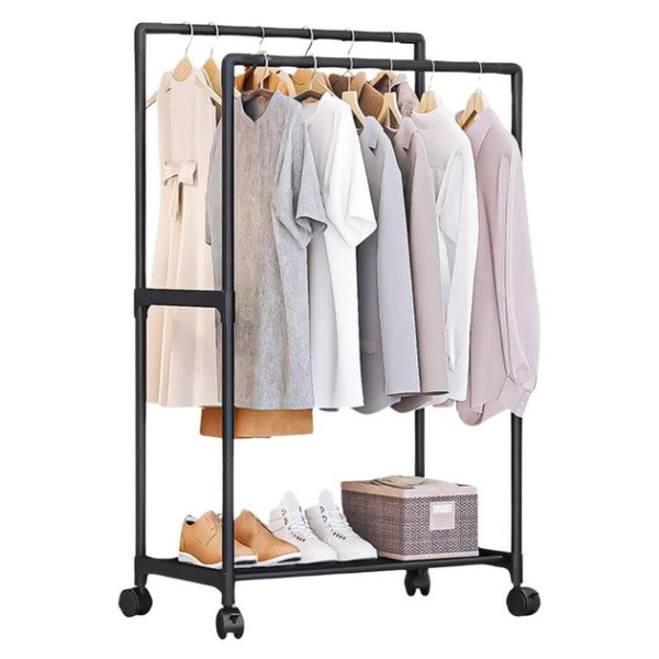 Вішалка для одягу подвійна на колесах Bodasan 9108, чорна, підлогова