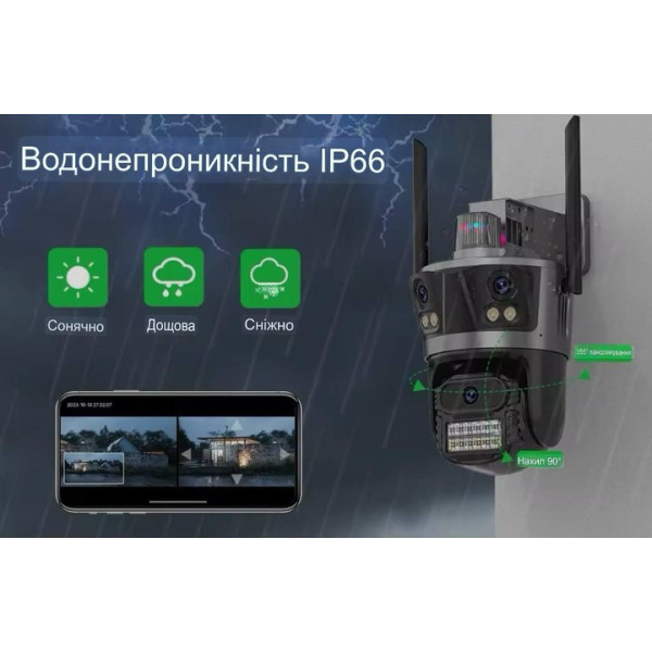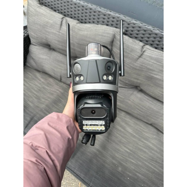 Вулична Wi-Fi IP-камера відеоспостереження Icsee XM77 з трьома об'єктивами 12 МП, нічним баченням, інтелектуальним керуванням