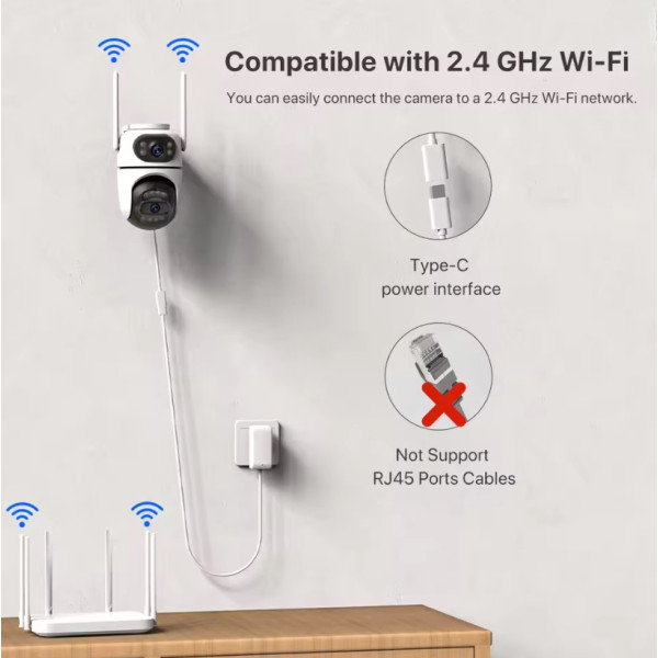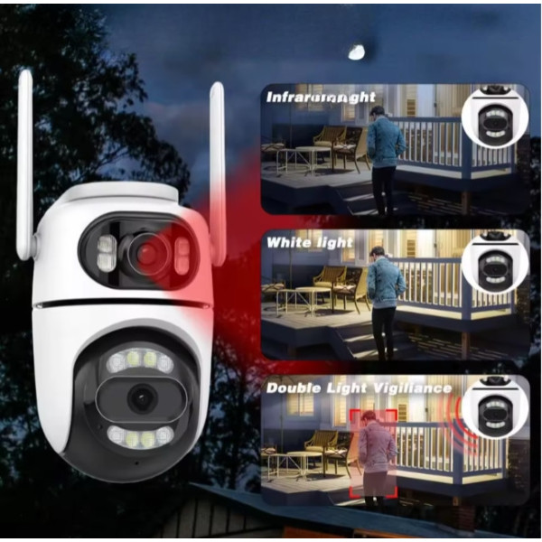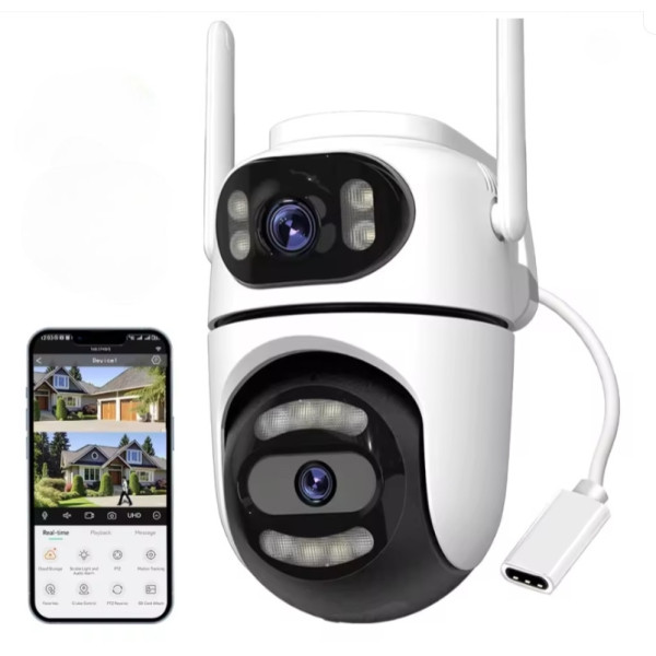 Вулична Wi-Fi камера відеоспостереження Q2 Dual Lens 360° — це сучасне рішення для цілодобової охорони будинку, дачі, складу або офісу. Обладнана подвійним об'єктивом і поворотним механізмом PTZ, камера забезпечує панорамний огляд 360° і контроль території без «мертвих зон».