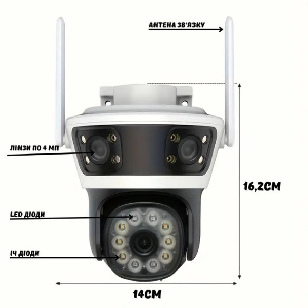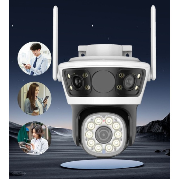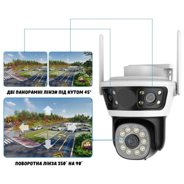 Вулична Wi-Fi відеокамера Q70 з трьома лінзами 2+2 Мп, нічним баченням, датчиком руху та підтримкою LAN
