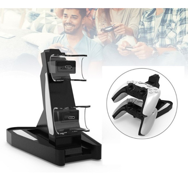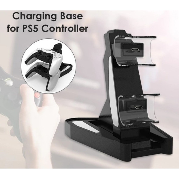 Зарядна док-станція для 5 — це зручне рішення для одночасного заряджання двох бездротових контролерів DualSense. Підставка обладнана двома роз'ємами Type-C, що дає змогу швидко й безпечно встановлювати геймпади для заряджання.