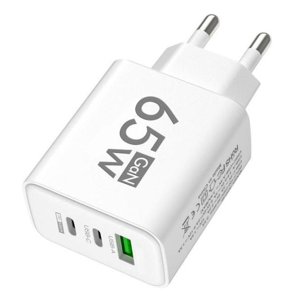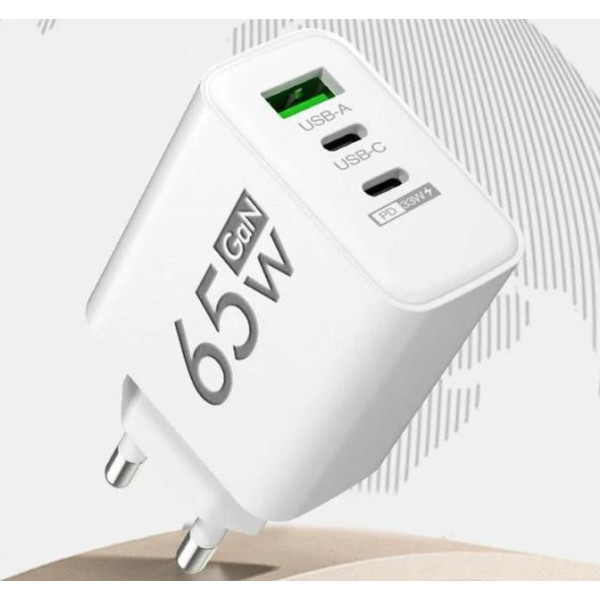 Зарядний пристрій для телефона 65W GaN TRG-185, USB Type-C і A, швидке заряджання Біла